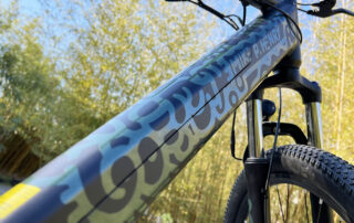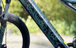 La couleur du VAE (Vélo à Assistance Electrique) dans cette série spéciale a été choisie pour évoquer le camouflage. Un camouflage urbain qui se veut plus discret que ses déclinaisons bleue ou grise, tout en demeurant insolent par le graphisme, classe par le rendu. Un vélo haut de gamme mais quelque peu sale gosse.