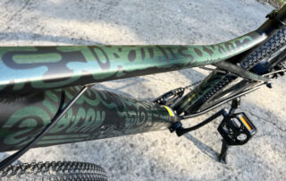 Le modèle « Artiste » du VTT se différencie des versions commerciales standards, par sa livrée verte subtile, dont les reflets changent constamment au gré de la lumière. Un travail mené en collaboration avec un carrossier Français, expert en mécaniques de luxes et colorimétries complexes.